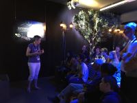 La journée, enfin, s’est achevée sur la conférence de Pasquale D.Serpico à 17h. Son thème -« Les astroparticules et la cosmologie »- en a enthousiasmé plus d’un : en témoigne le petit groupe de personnes qui sont restées là pour en savoir davantage auprès de notre physicien.