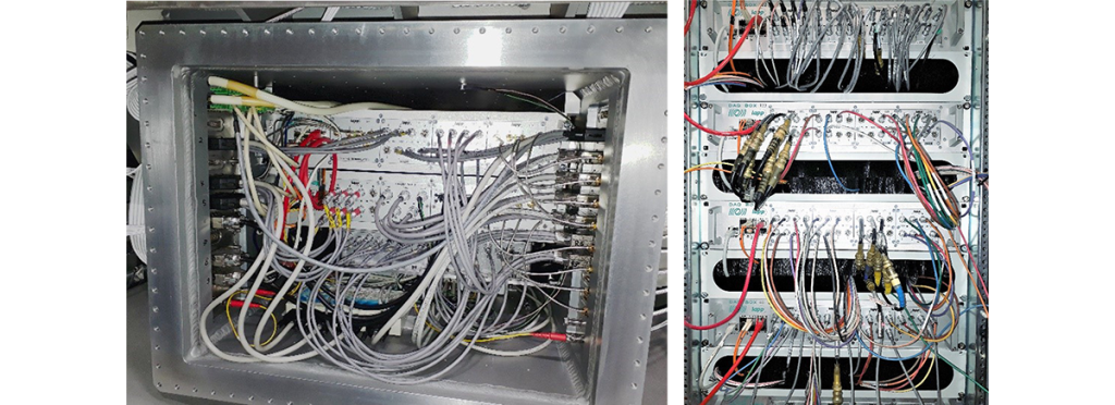 Les agents du service développent toute la chaîne de lecture d’un détecteur, depuis l’amplification bas bruit et faible consommation du signal, sa numérisation, son traitement par des systèmes rapides et performants et finalement l’envoi des données vers le système d’acquisition informatique de l’expérience.